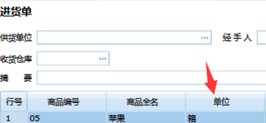 2、单据的应用:当我们在单据上选择这个商品之后,则会在单据表体自动带出设置好的默认仓库以及默认货位(出入库单选择该商品据均会带出默认的仓库以及货位。)